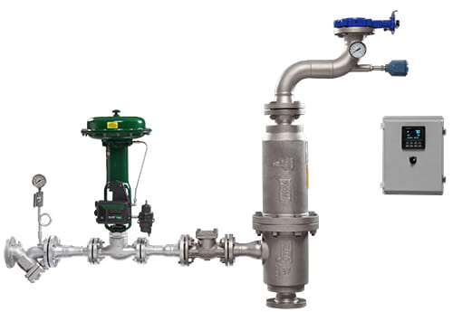 The Constant Flow Steam Injector mixes medium-to-high pressure steam with cold water and delivers instant hot water. It is ideal when the water flow is fixed or varies over a narrow span (3:1).