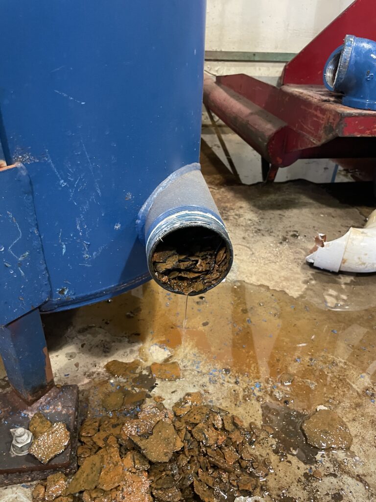 Prompted by this discovery, we advised our customer to inspect the trap and drain pipe. To our astonishment, we found the trap covered in rust, obstructing the separator tank and causing the unusual ejection of gas and water. After cleaning the separator tank, the system was rebooted and to everyone’s delight, operated perfectly.